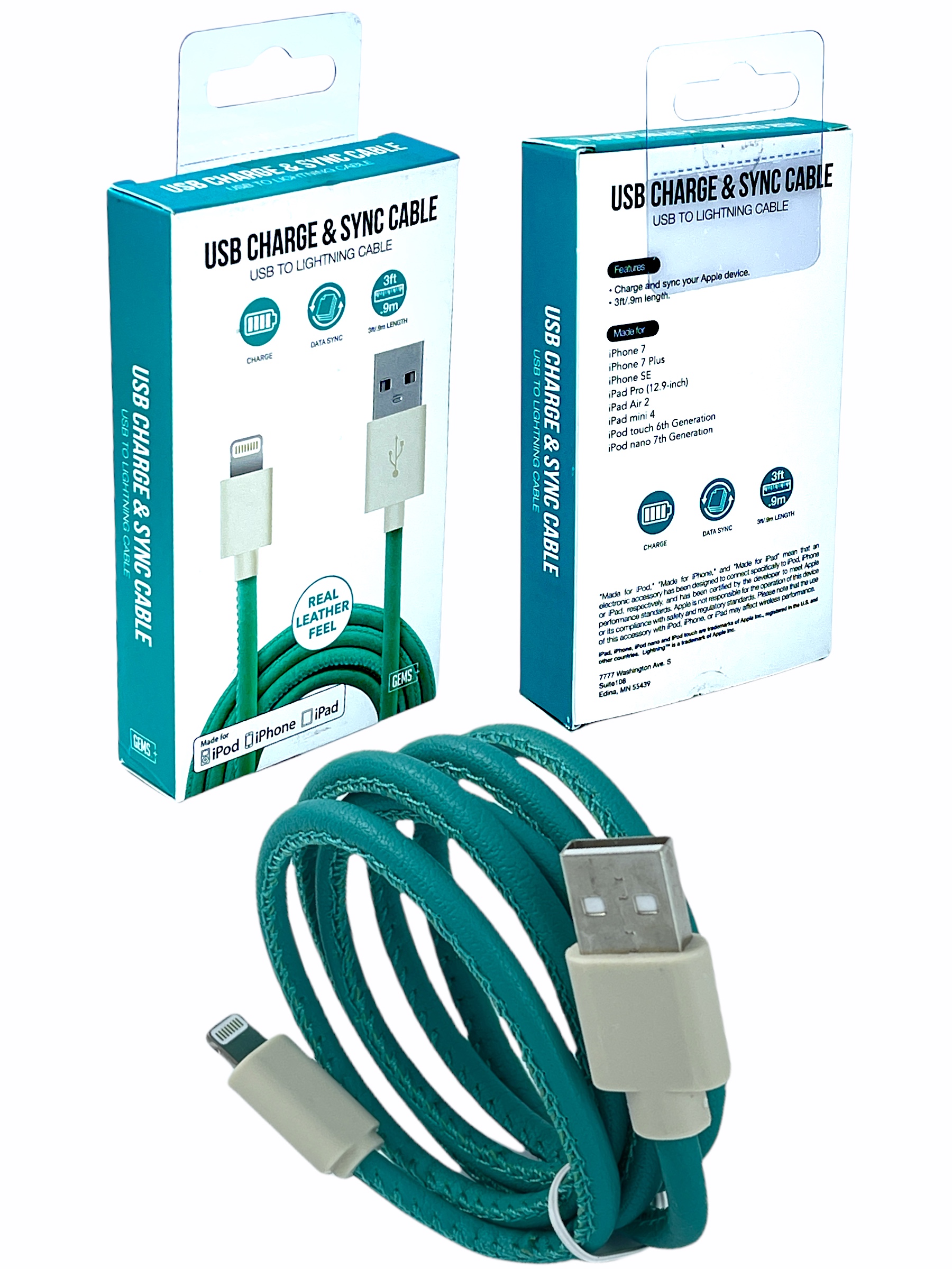 GEMS USB Charge & Sync 3ft Cable, USB to Lightning - Teal