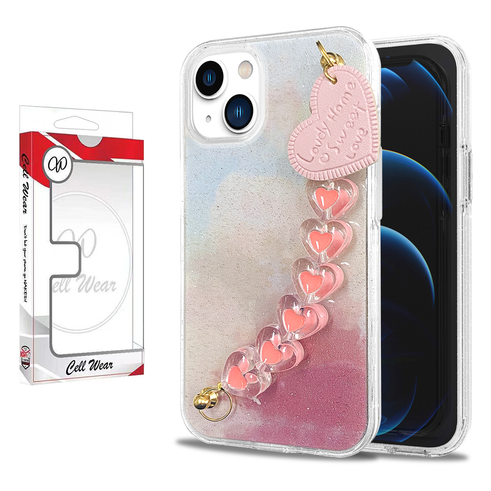 Heart Chain Bracelet Case-Pink Cloud-For iPhone 13/14
