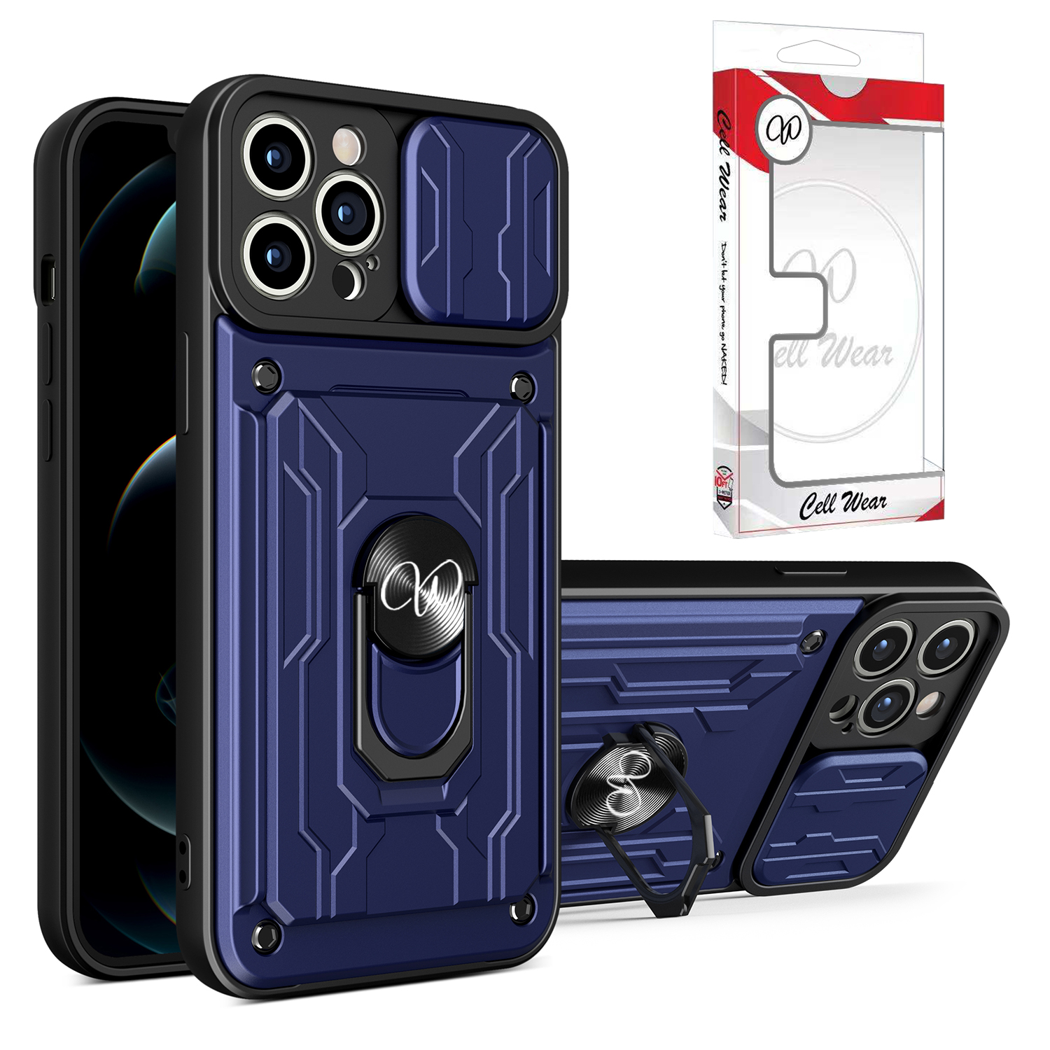 2-In-1 Card Holder Ring Stand Case Navy Blue-For iPhone 12 Pro Max