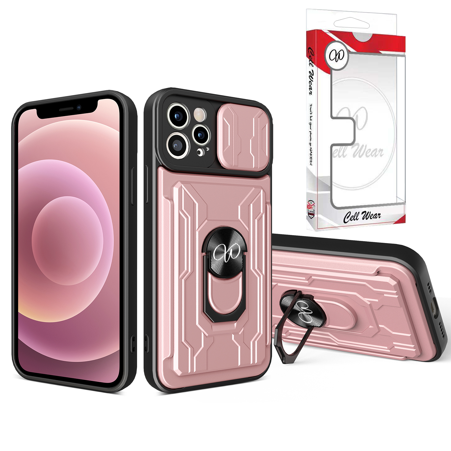 2-In-1 Card Holder Ring Stand Case Rose Gold-For iPhone 13 Pro