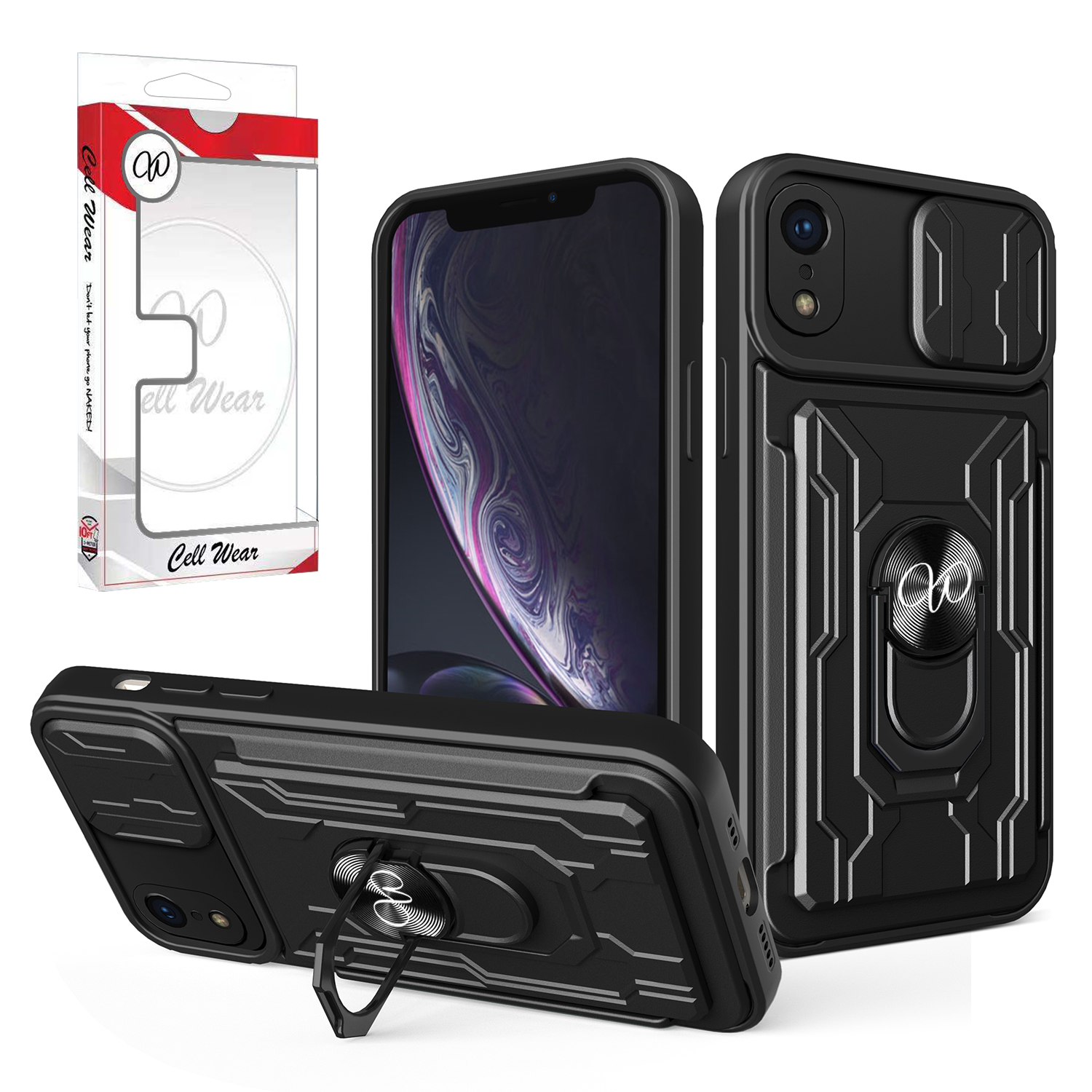 2-In-1 Card Holder Ring Stand Case Black-For iPhone XR