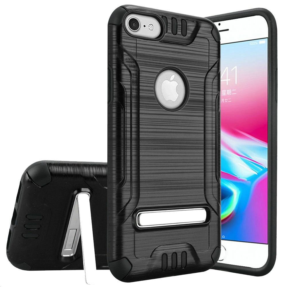 For iPhone SE 3 (2022) SE/8/7 Combat Metallic Brushed Design Hybrid with Magnetic Kickstand Shock Proof PC TPU - Black