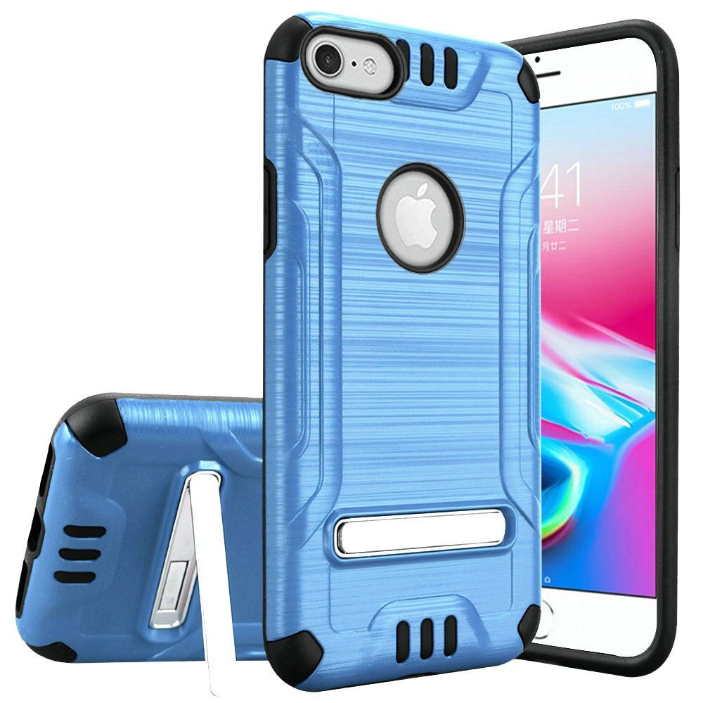 For iPhone SE 3 (2022) SE/8/7 Combat Metallic Brushed Design Hybrid with Magnetic Kickstand Shock Proof PC TPU - Dark Blue