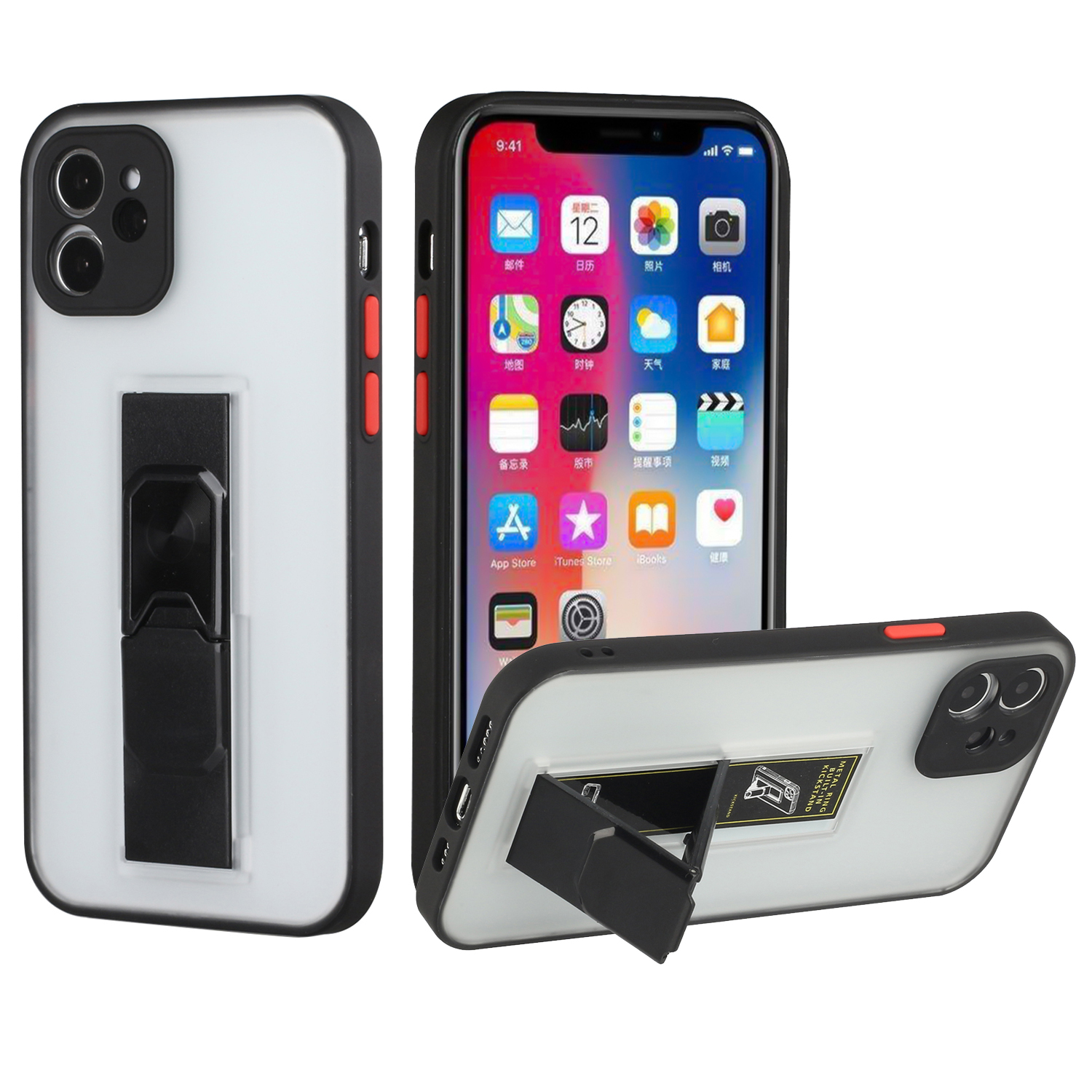 For iPhone 12/12 Pro Bright Color Magnetic KickStand Transparent Hybrid Cover Case - Black