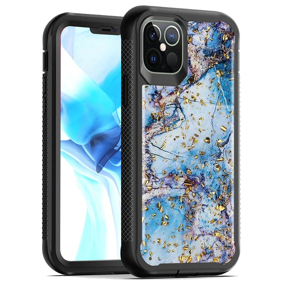 For iPhone 13/14 Epoxy Marble Design Hybrid Case Cover - Blue