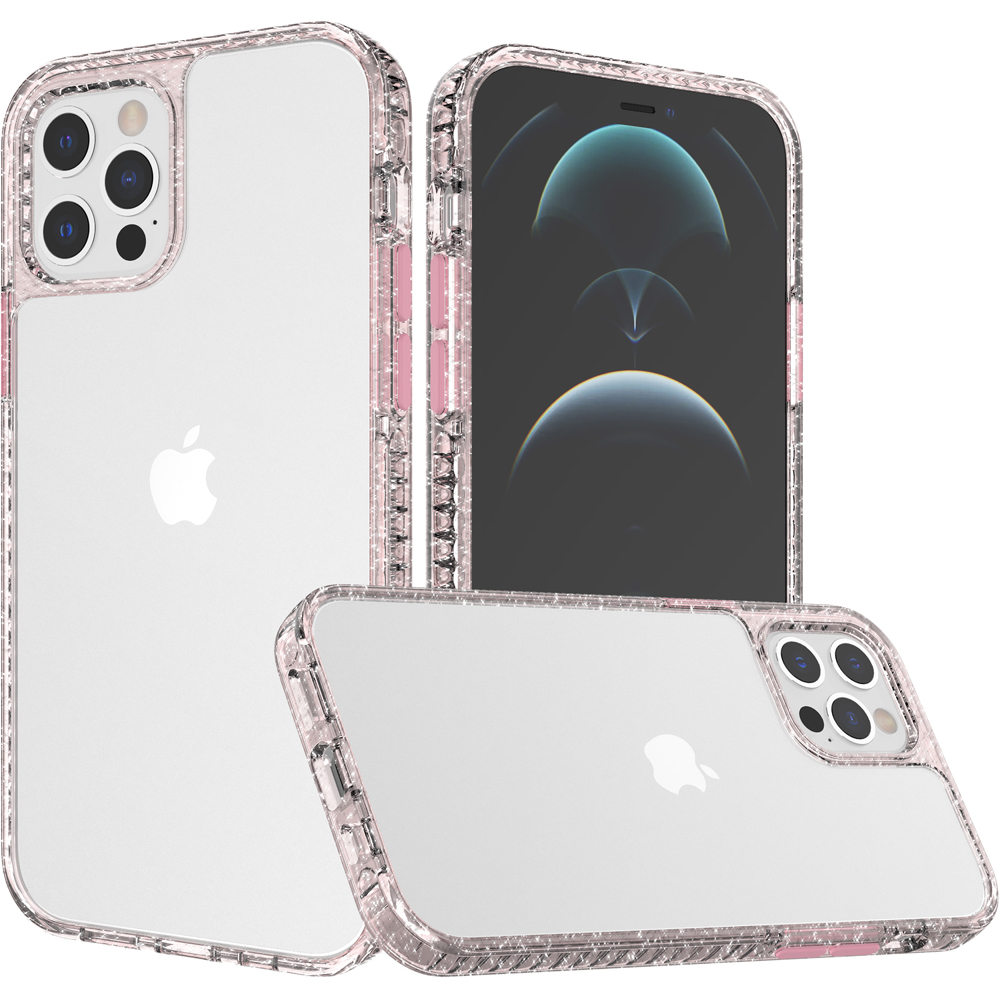 For Apple iPhone 14 Plus 6.7" Thick Diamond Design Edged Colorful Buttons Hybrid Case Cover - Rose Gold/Pink