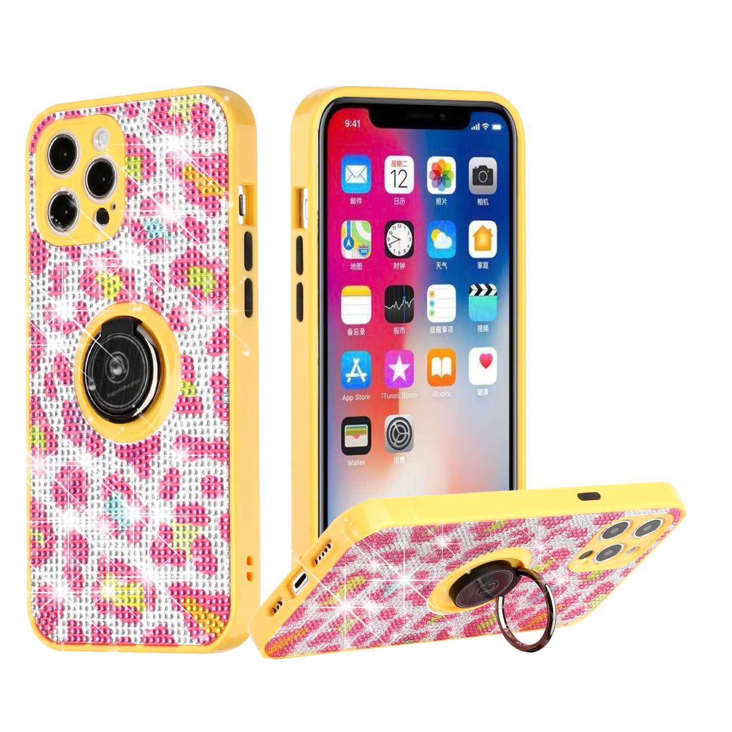For iPhone 13/14 Crystal Diamond Bling Magnetic Ring Stand Case Cover - Animal