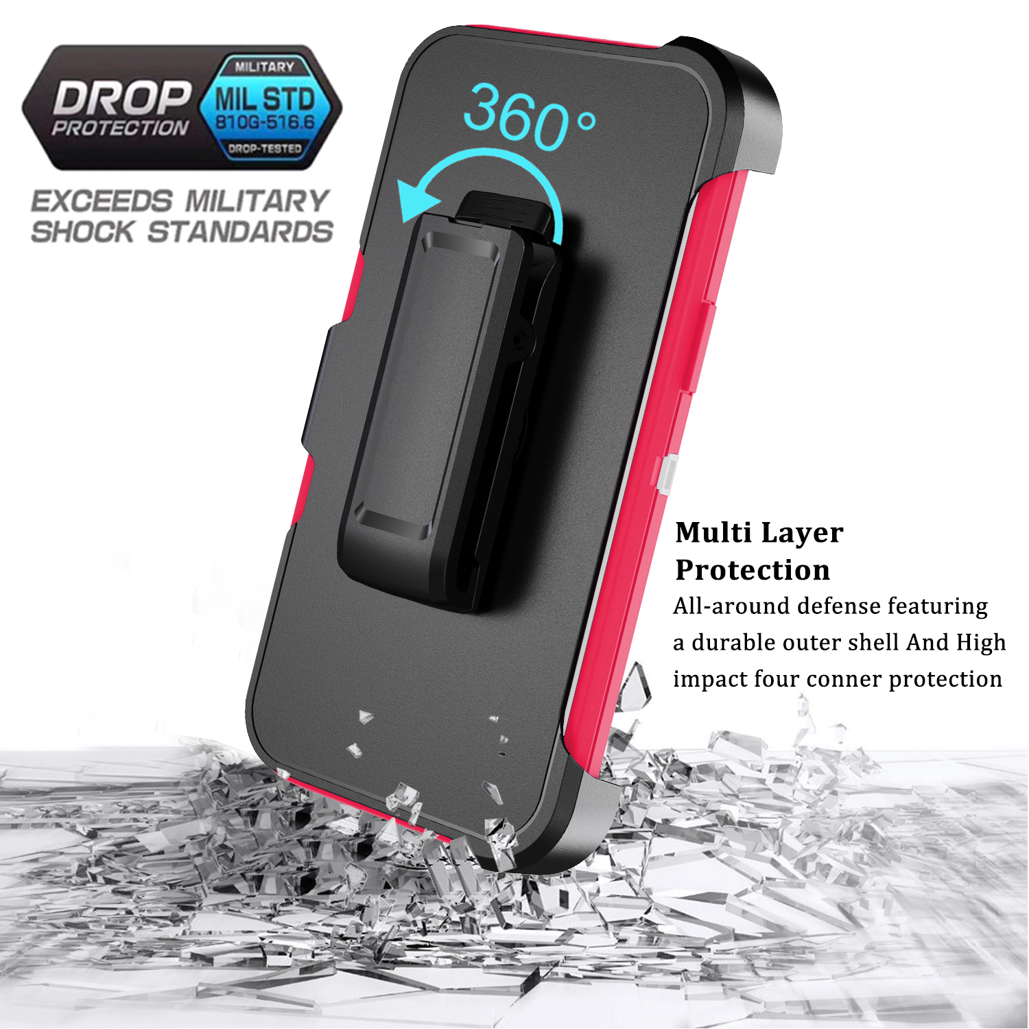 Shockproof Defender Case with Holster for IPhone 12/12 Pro Pink/White