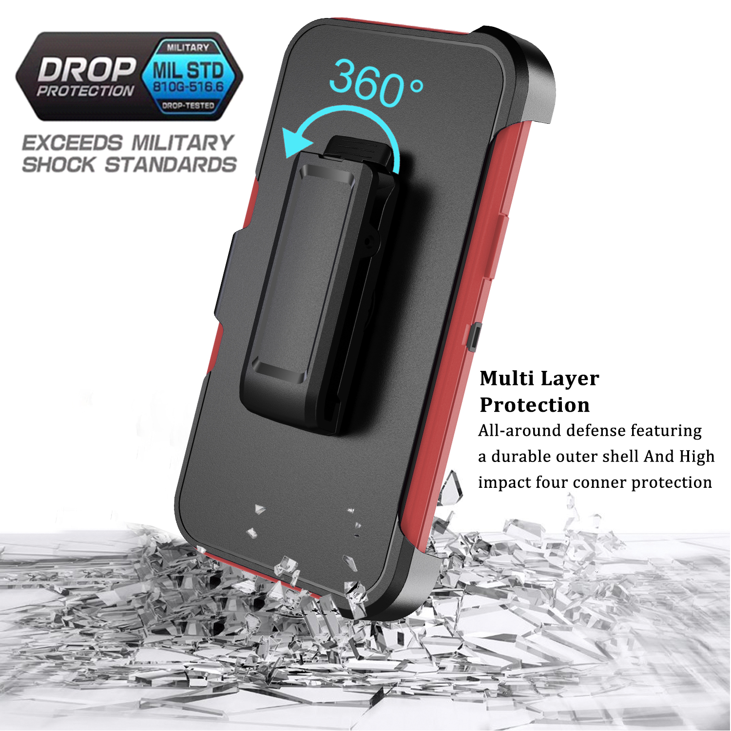Shockproof Defender Case with Holster, Red for iPhone 13/14
