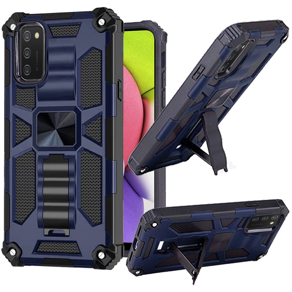 For Samsung Galaxy A03s 2022 Machine Magnetic Kickstand Case Cover - Dark Blue