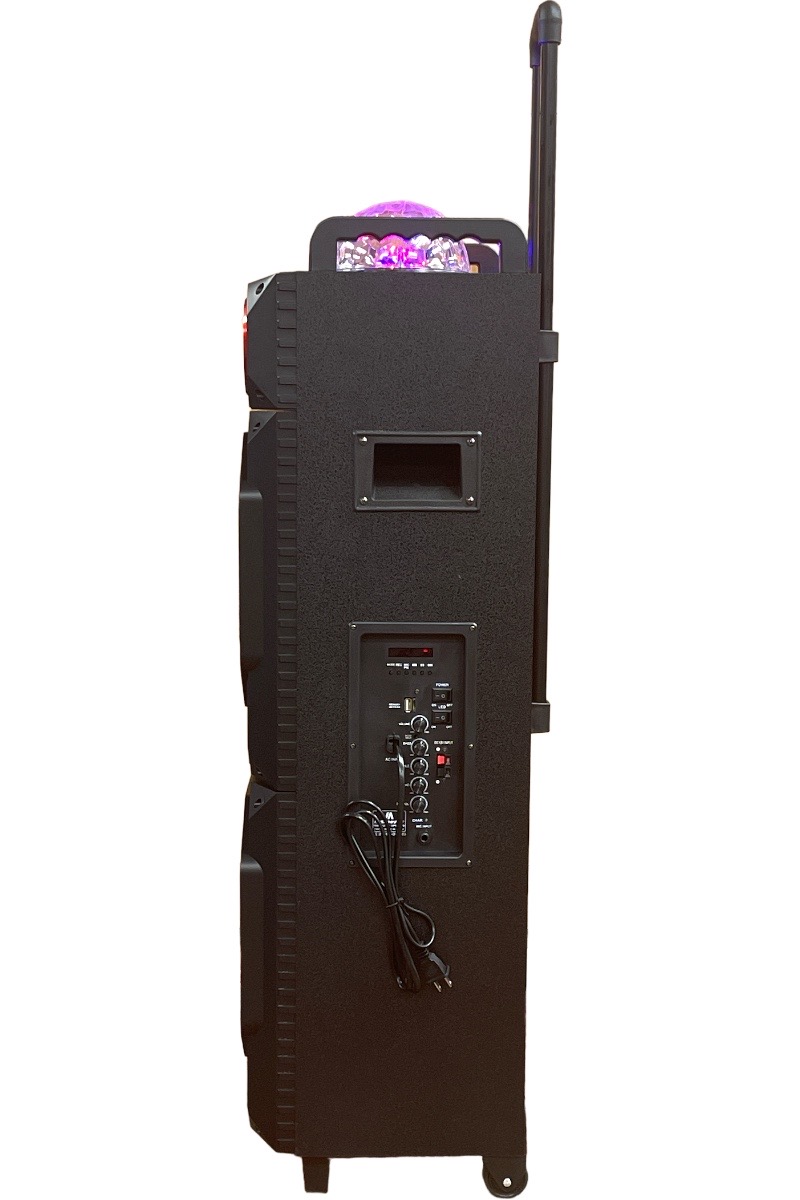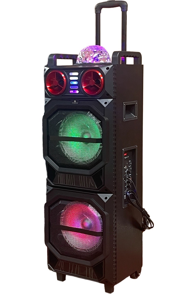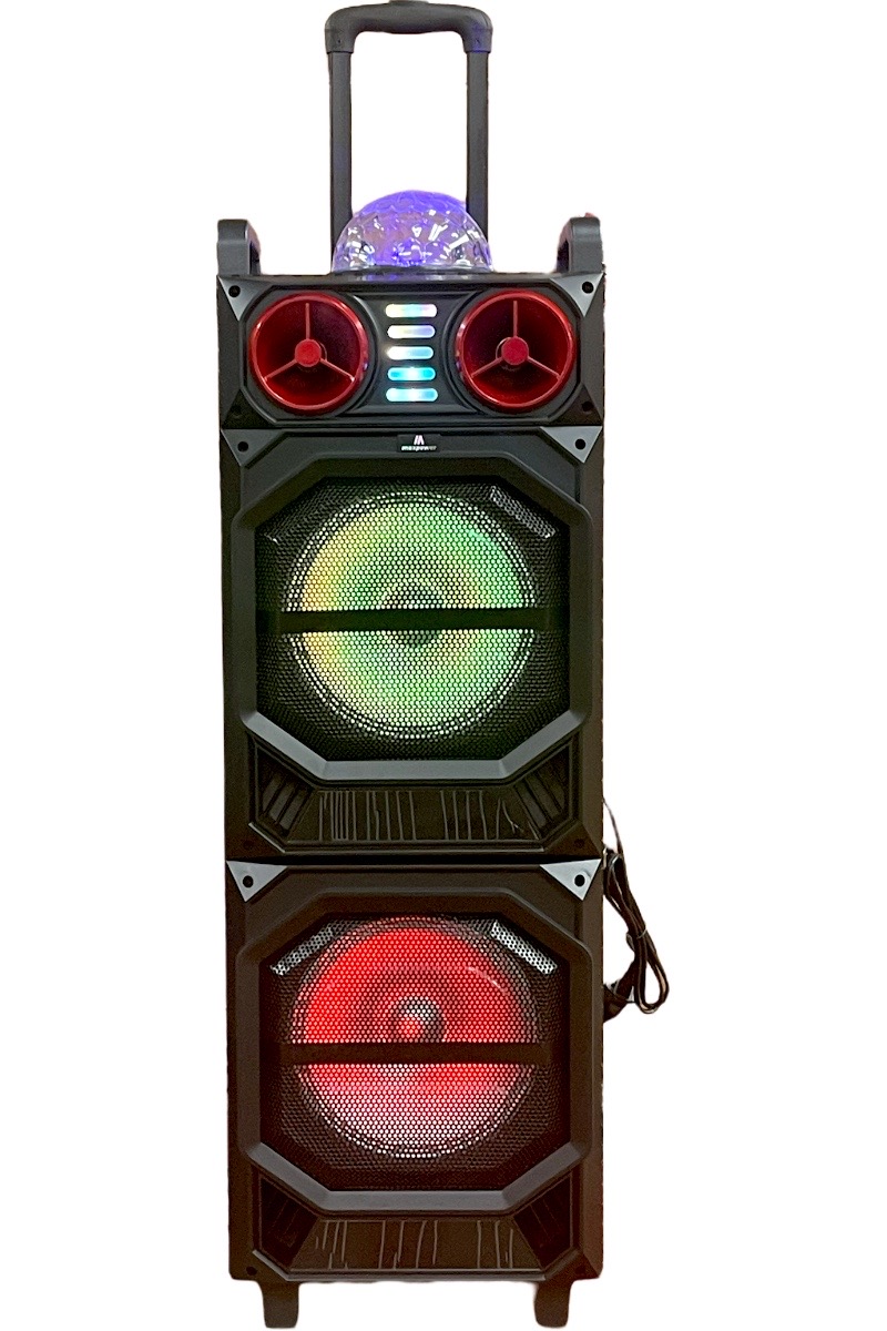 MAXPOWER 10" X 2 DJ Woofer with Disco Ball, Rechargeable Battery - BLACK Bluetooth, SD, USB,AM/FM, Wired MIC