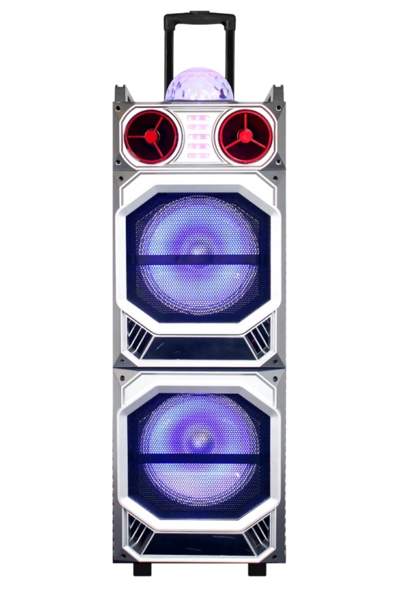 MAXPOWER 10" X 2 DJ Woofer with Disco Ball, Rechargeable Battery - SILVER Bluetooth, SD, USB,AM/FM, Wired MIC