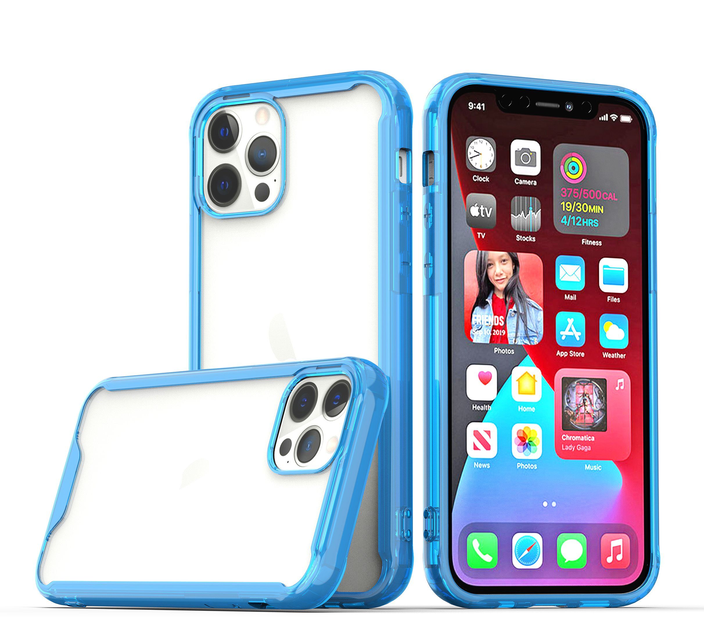 For Apple iPhone 11 (XI6.1) Colored Shockproof Transparent Hard PC TPU Hybrid Case Cover - Clear/Blue