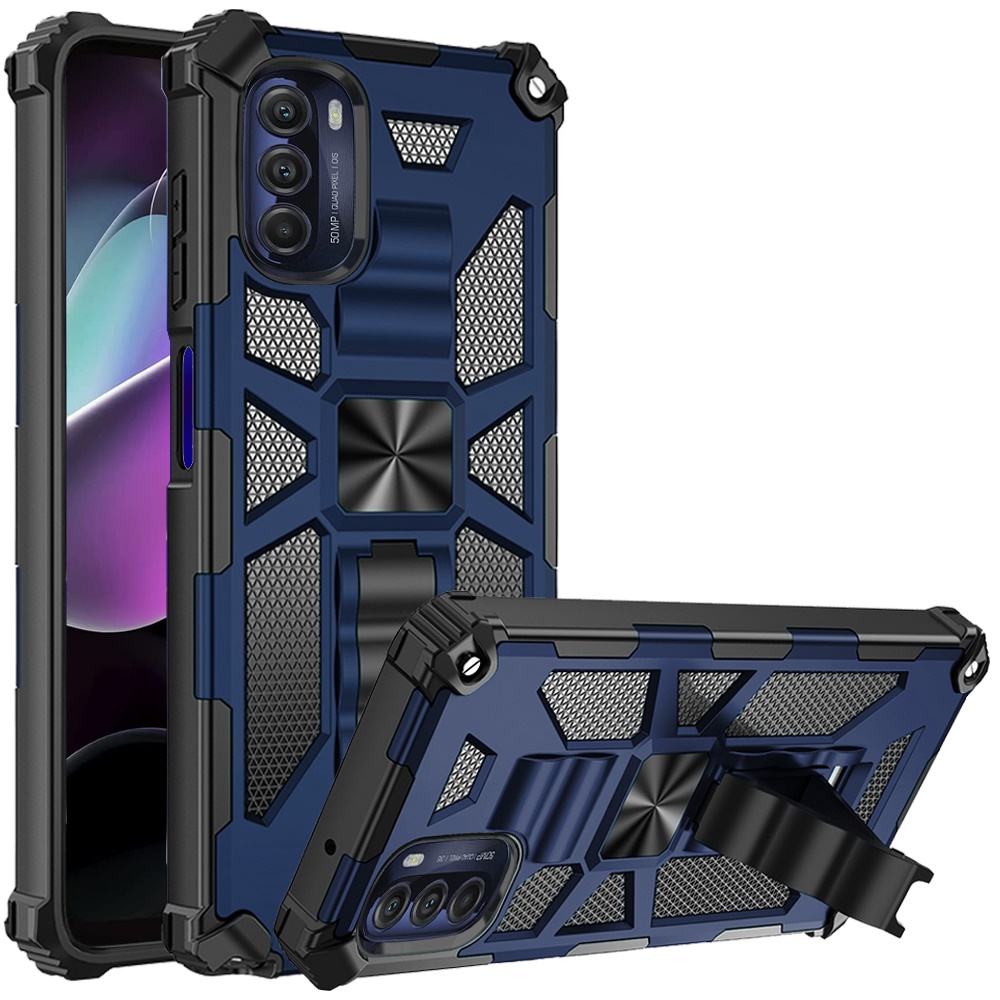 For Moto G 5G 2022 Machine Magnetic Kickstand Case Cover - Dark Blue