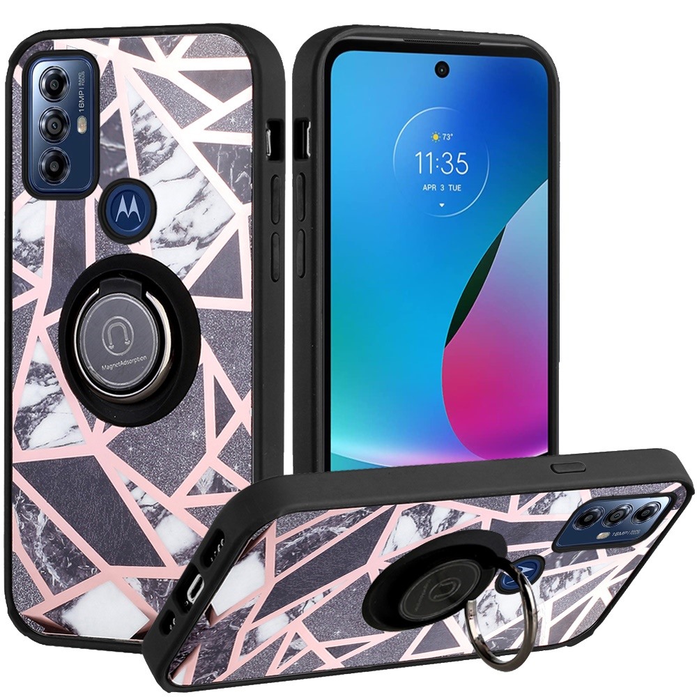 For Motorola Moto G Play 2023 Unique IMD Design Magnetic Ring Stand Cover C
