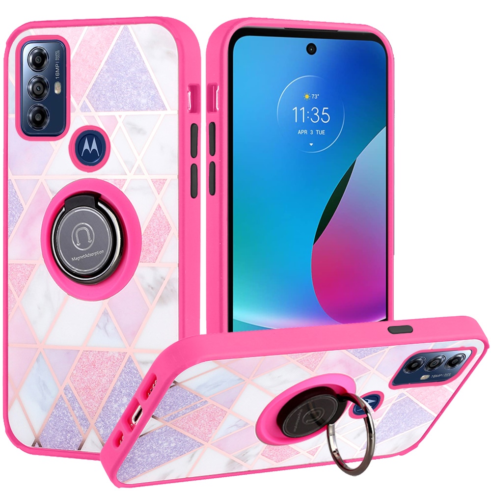 For Motorola Moto G Play 2023 Unique IMD Design Magnetic Ring Stand Cover C
