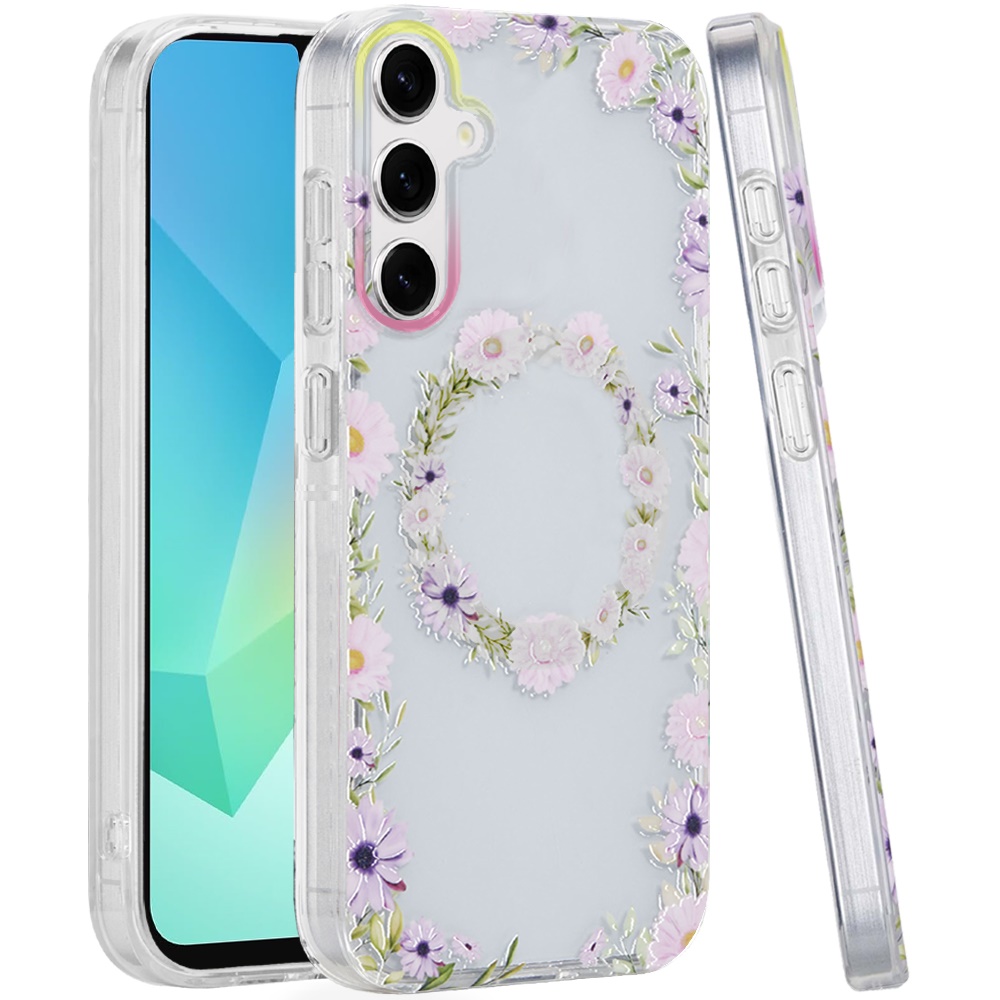 For Samsung A16 5G Double Layer Design IMD TPU Case - Yellow/Purple Floral