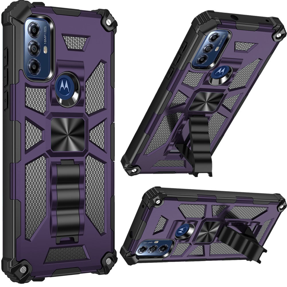 For Motorola Moto G Play 2023 Machine Magnetic Kickstand Case Cover - Dark Purple
