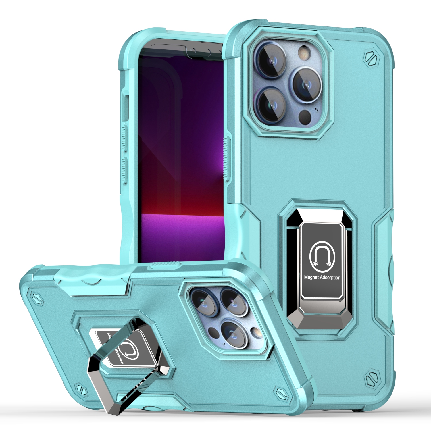For iPhone 15 OPTIMUM Magnetic Ring Stand Hybrid Case Cover - Teal