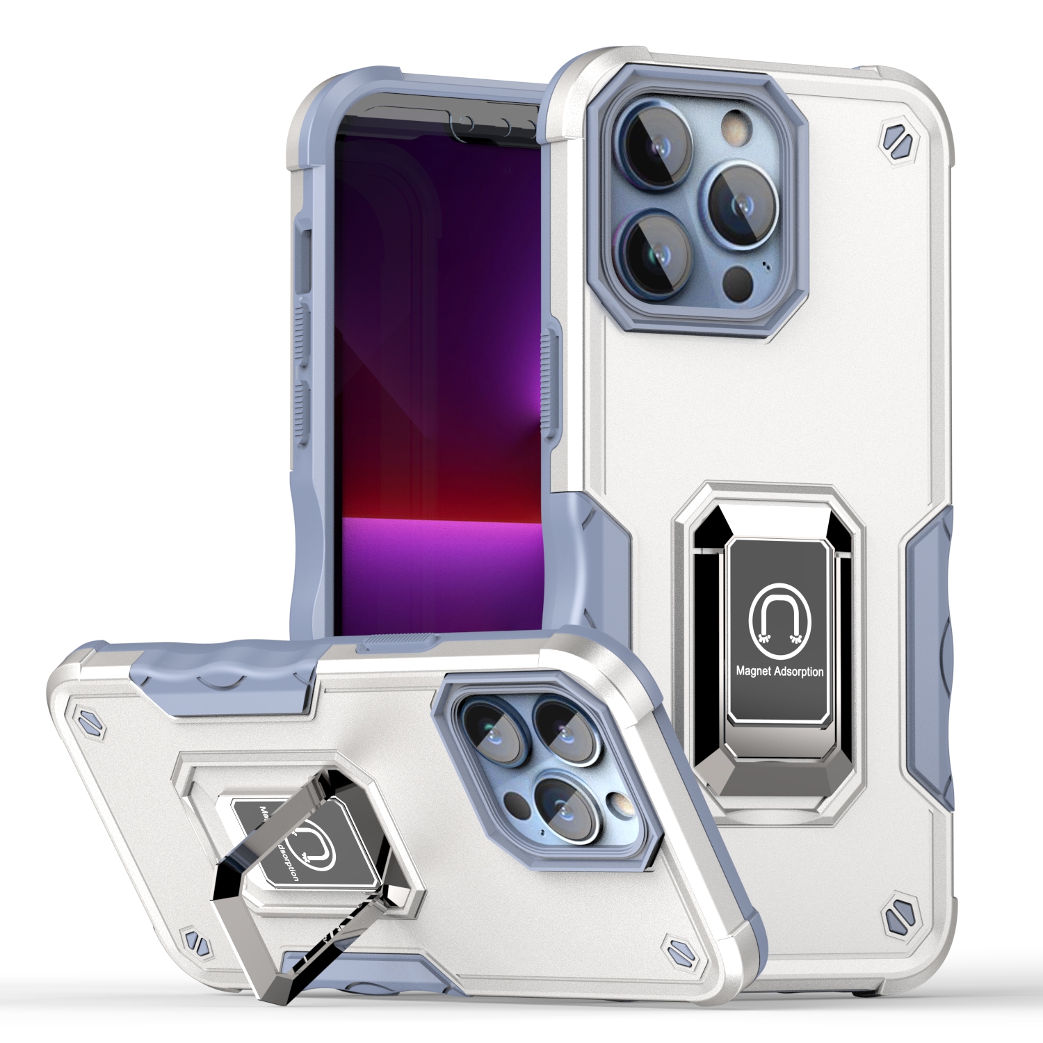 For iPhone 15 OPTIMUM Magnetic Ring Stand Hybrid Case Cover - White