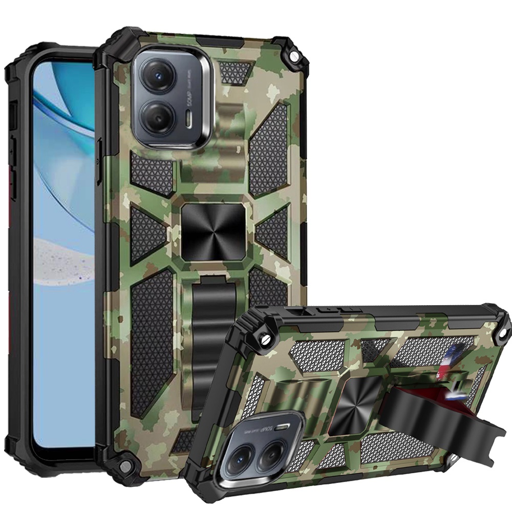 For Motorola MOT G 5G 2023 Machine Design Magnetic Kickstand Case Cover - Camo Green