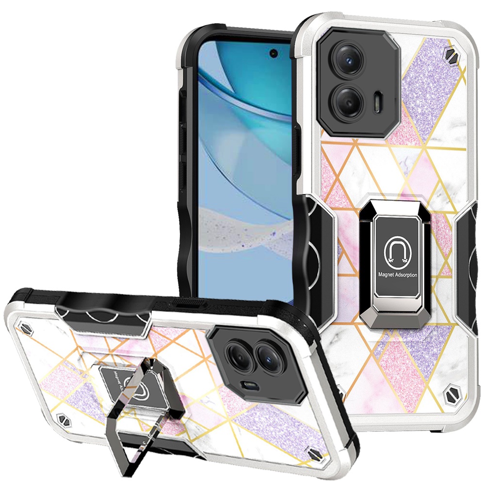 For Motorola MOT G 5G 2023 Stellar Hybrid IMD Design Ring Stand Cover Case - E