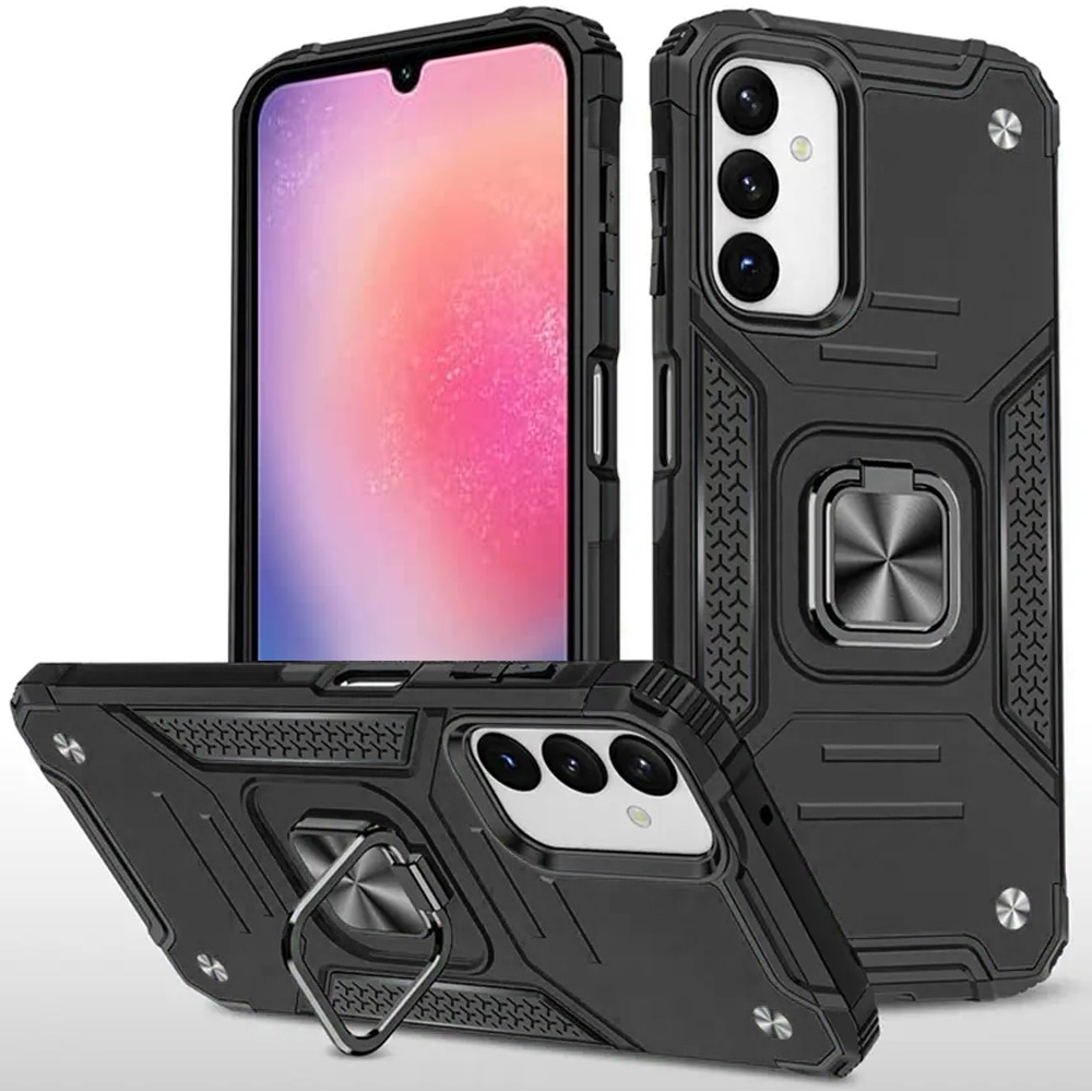 For Samsung A25 5G Robust Magnetic Kickstand Hybrid Case Cover - Black