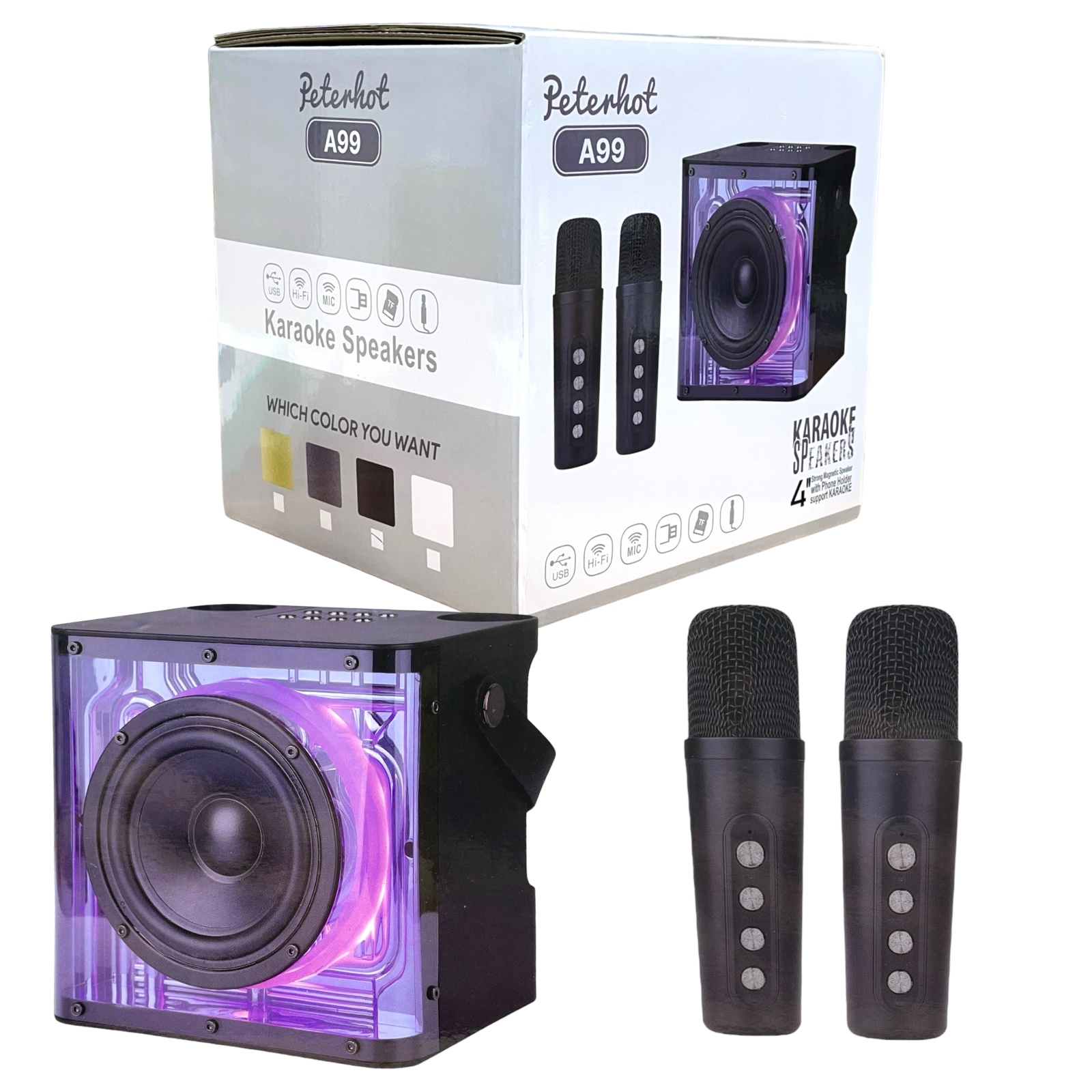 Bluetooth Karaoke Speaker 3600mAH Flashing LED Lights With 2 Wireless Microphone Phone Holder Support
