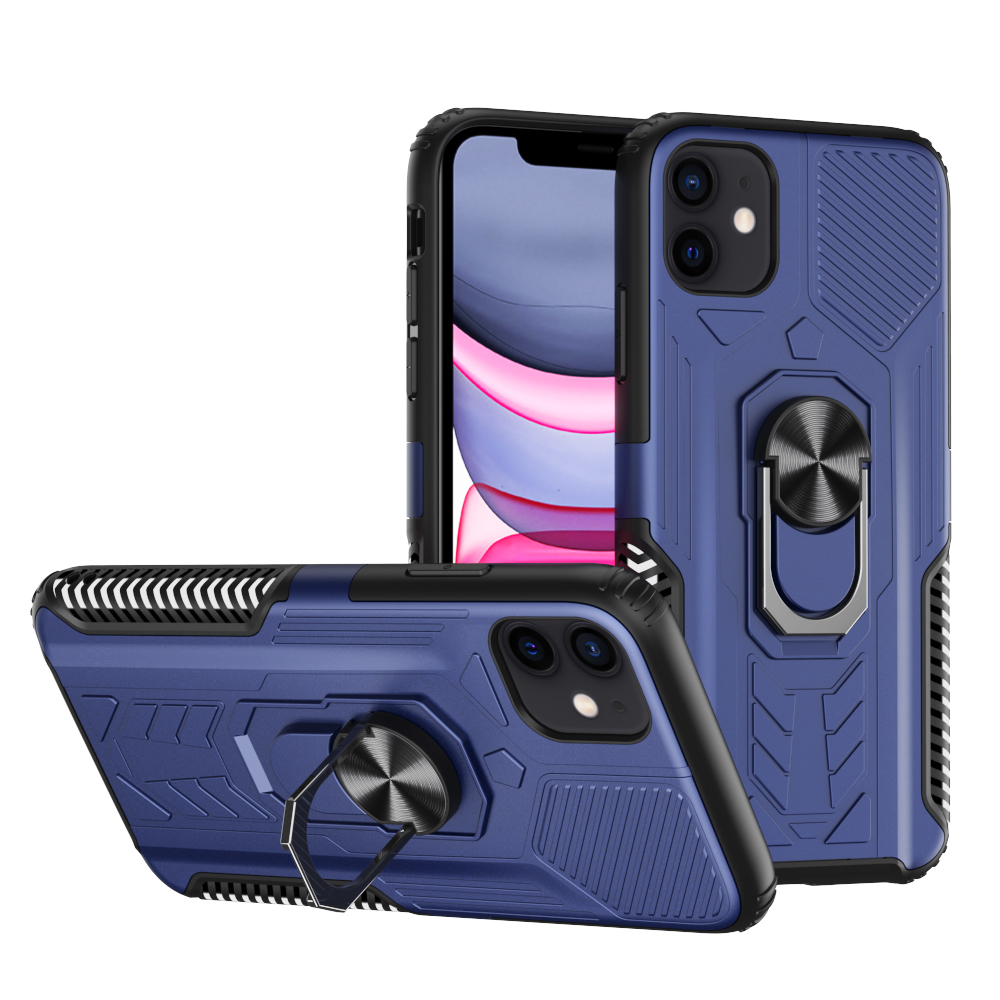 For Apple iPhone 11 (XI6.1) AQUA Strong Magnetic Ring Stand Hybrid Case Cover - Dark Blue