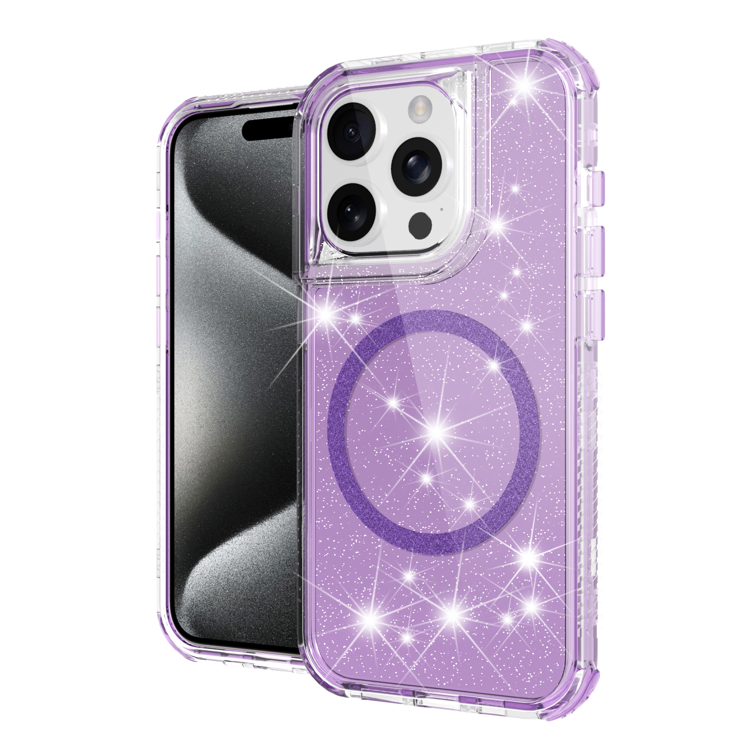 For iPhone 11 (XI6.1) Magnetic Ring Glitter 3in1 Hybrid Case Cover - Purple