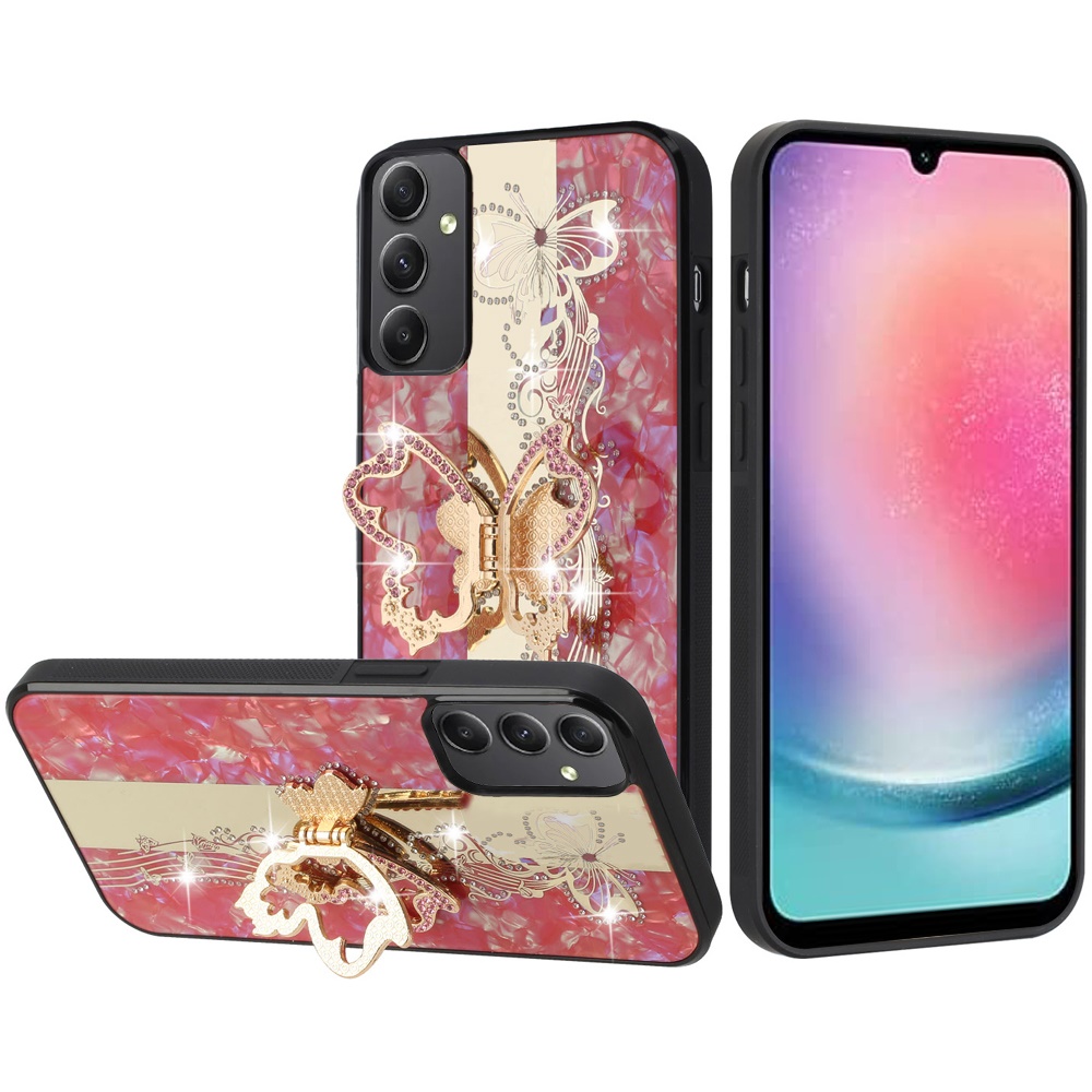 For Samsung A25 5G SPLENDID Diamond Glitter Ornaments Engraving Case Cover - Enchanted Butterfly Red