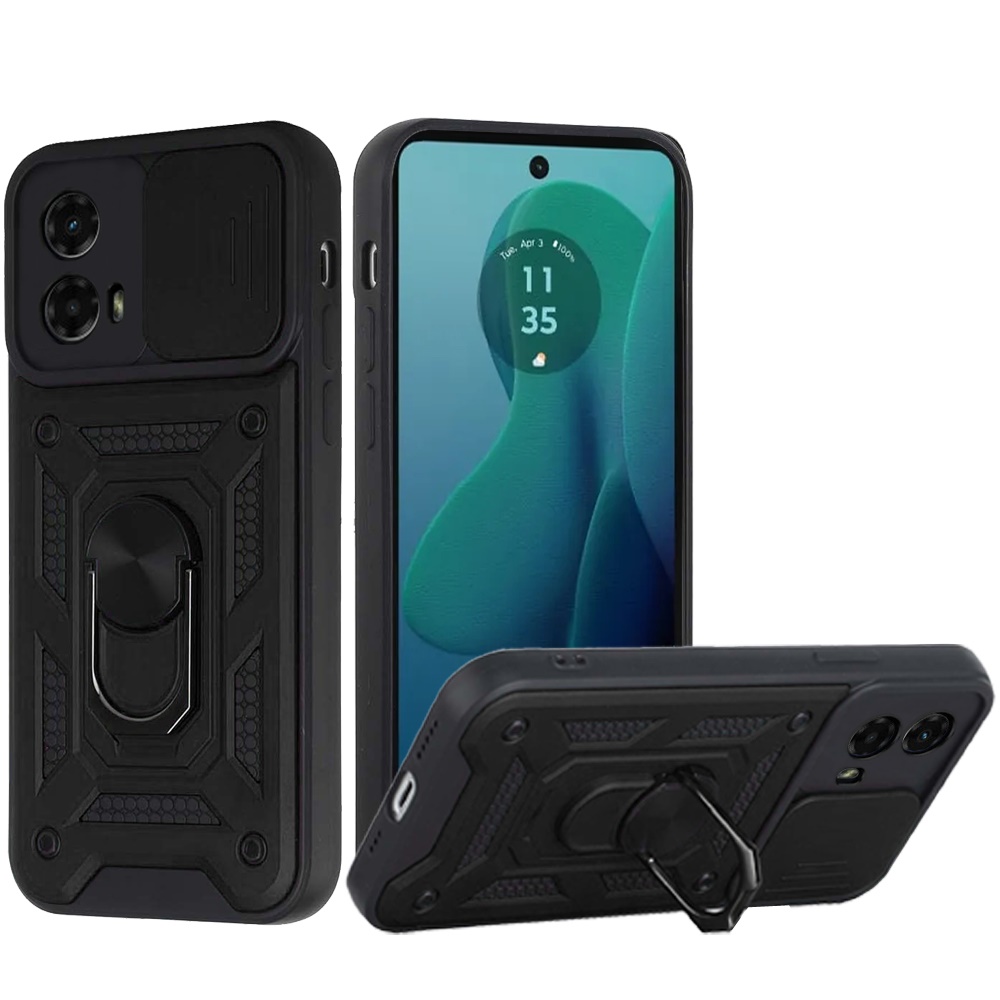 For Motorola Moto G 5G 2024 ELITE Camera Push Magnetic Ring Stand Hybrid Case Cover - Black