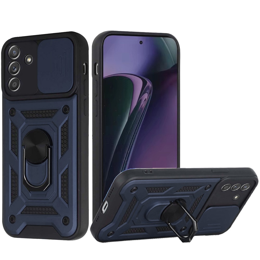 For Motorola Moto G Stylus 5G 2024 ELITE Camera Push Magnetic Ring Stand Hybrid Case Cover - Blue