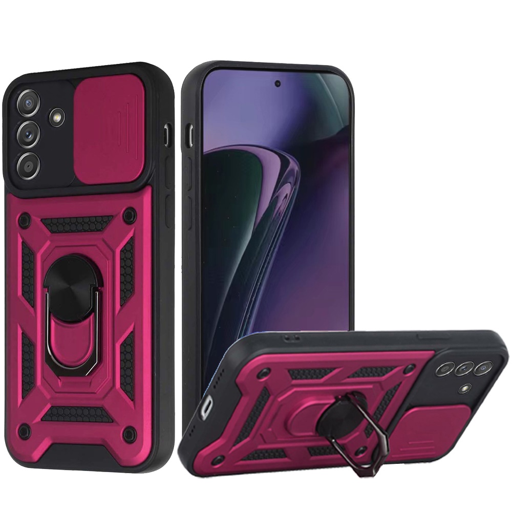 For Motorola Moto G Stylus 5G 2024 ELITE Camera Push Magnetic Ring Stand Hybrid Case Cover - Hot Pink