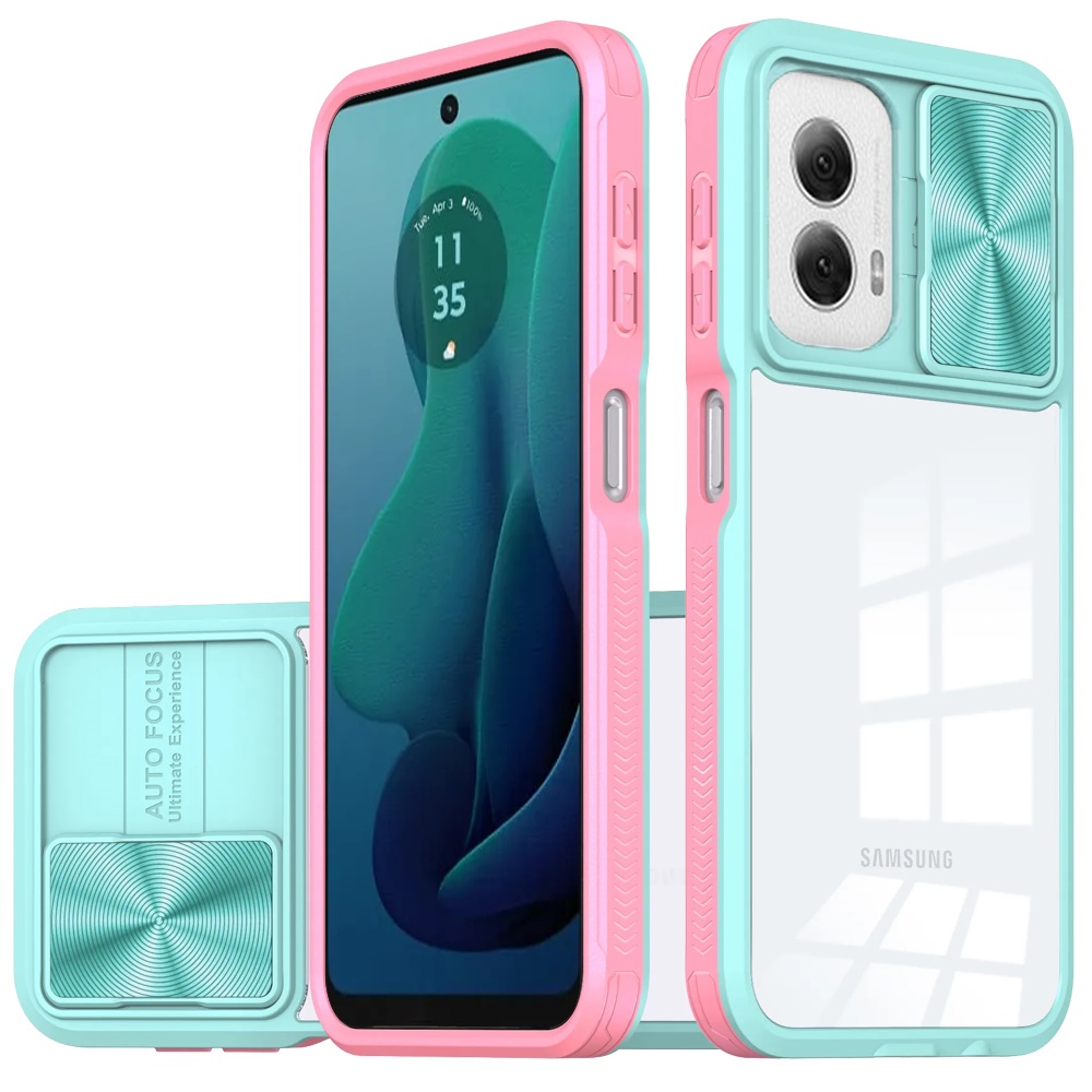 For Motorola Moto G 5G 2024 Fusion Transparent Clear Hybrid Case Cover - Pink/Blue