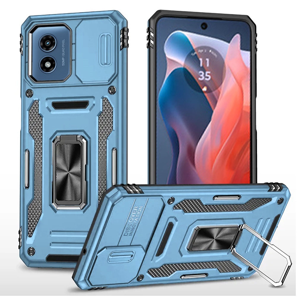 For Motorola Moto G Play 2024 Utter Tough Metal Ring Movable Camera Window Hybrid Case Cover - Light Blue