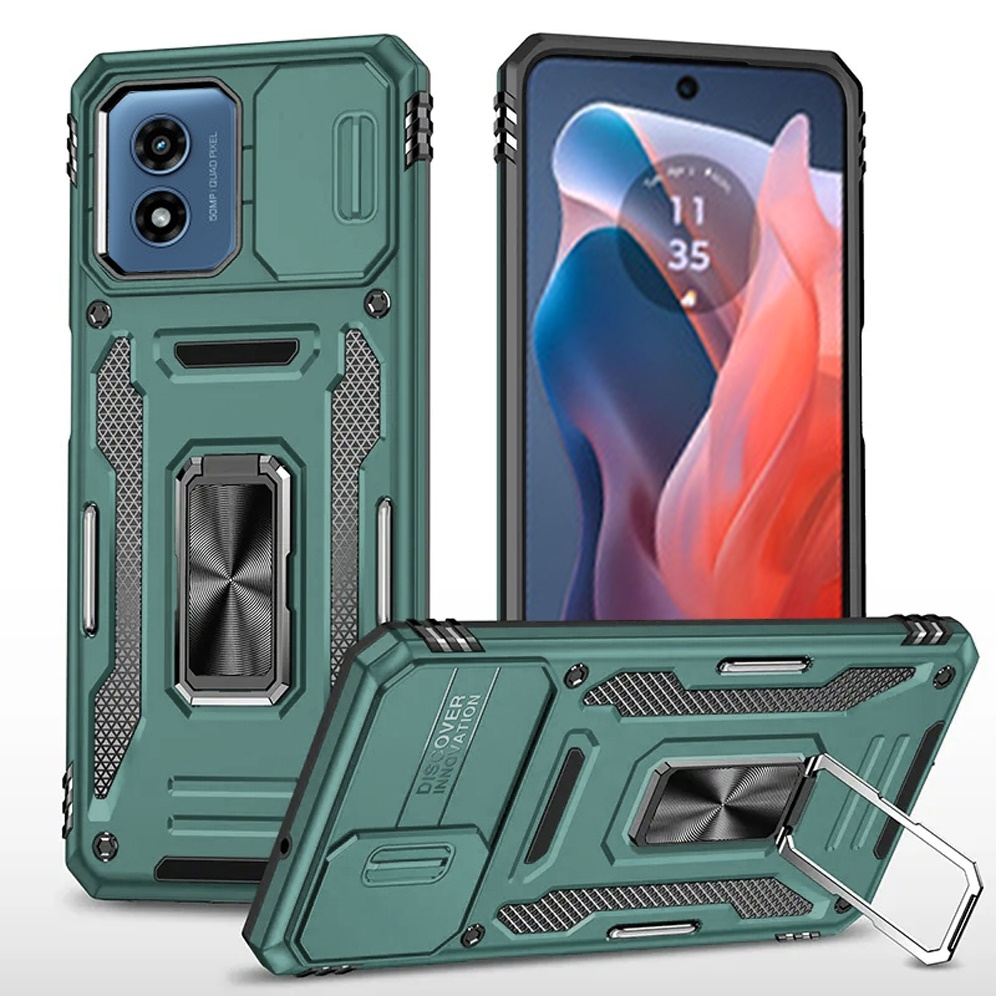 For Motorola Moto G Play 2024 Utter Tough Metal Ring Movable Camera Window Hybrid Case Cover - Midnight Green