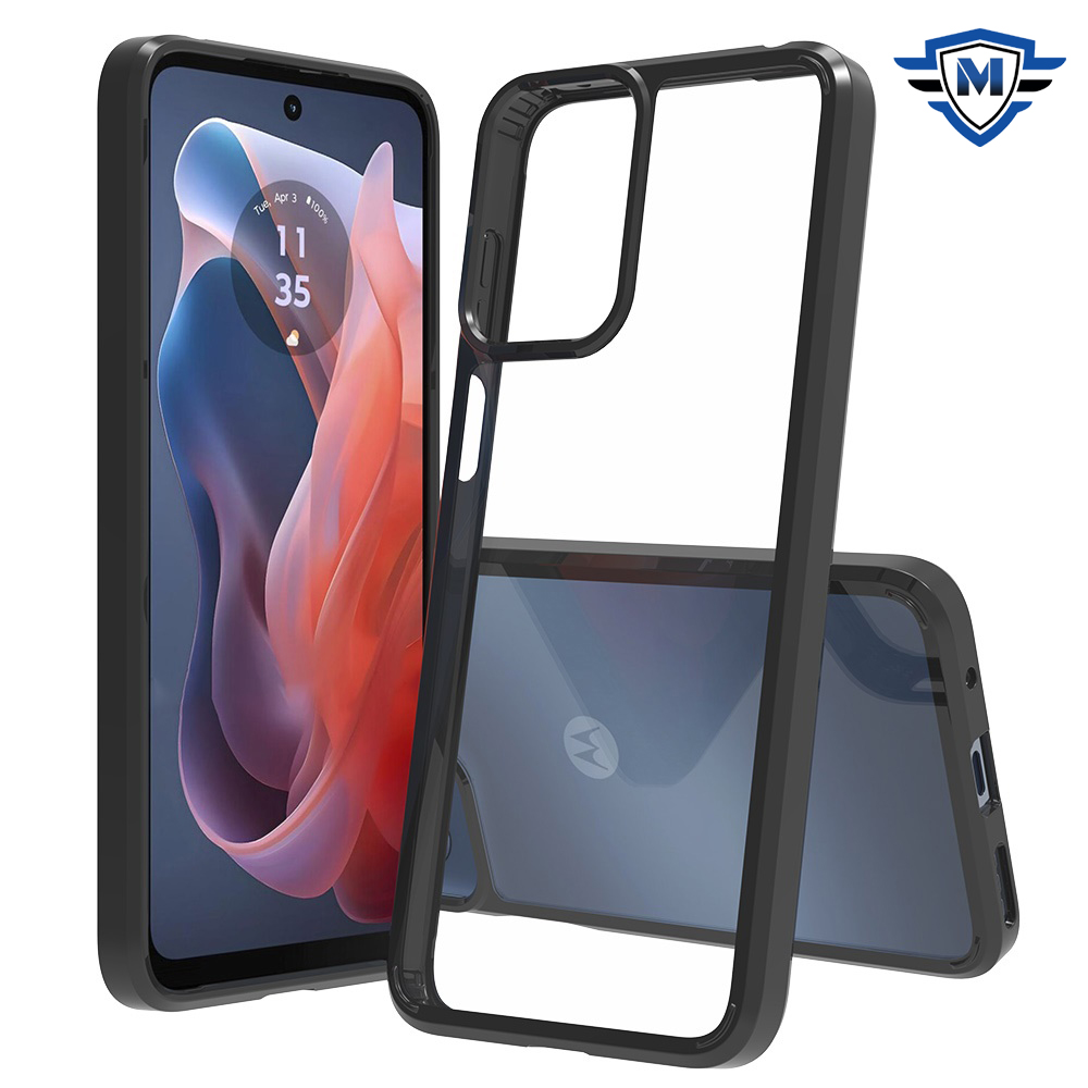 For Motorola Moto G Play 2024 METKASE Clear Transparent Hybrid Case Cover in Slide-Out Package - Clear PC + Black TPU