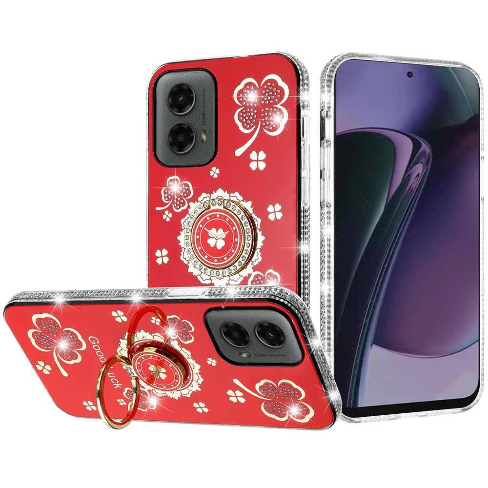 For Motorola Moto G Stylus 5G 2024 Splendid Glitter with Diamonds All Around Edges Ring Stand Case Cover - Red