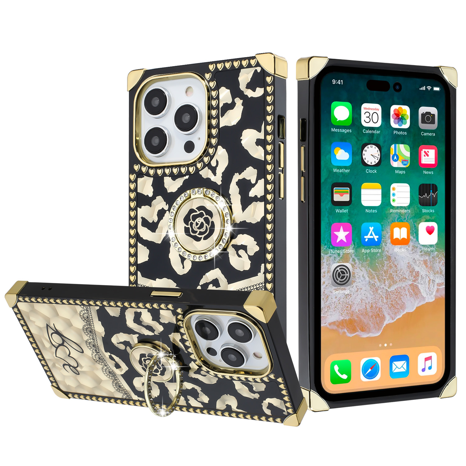 For Apple iPhone 11 (XI6.1) SQUARE Passion Glitter Diamond Ring Stand Case Cover - BLACK CHROME B