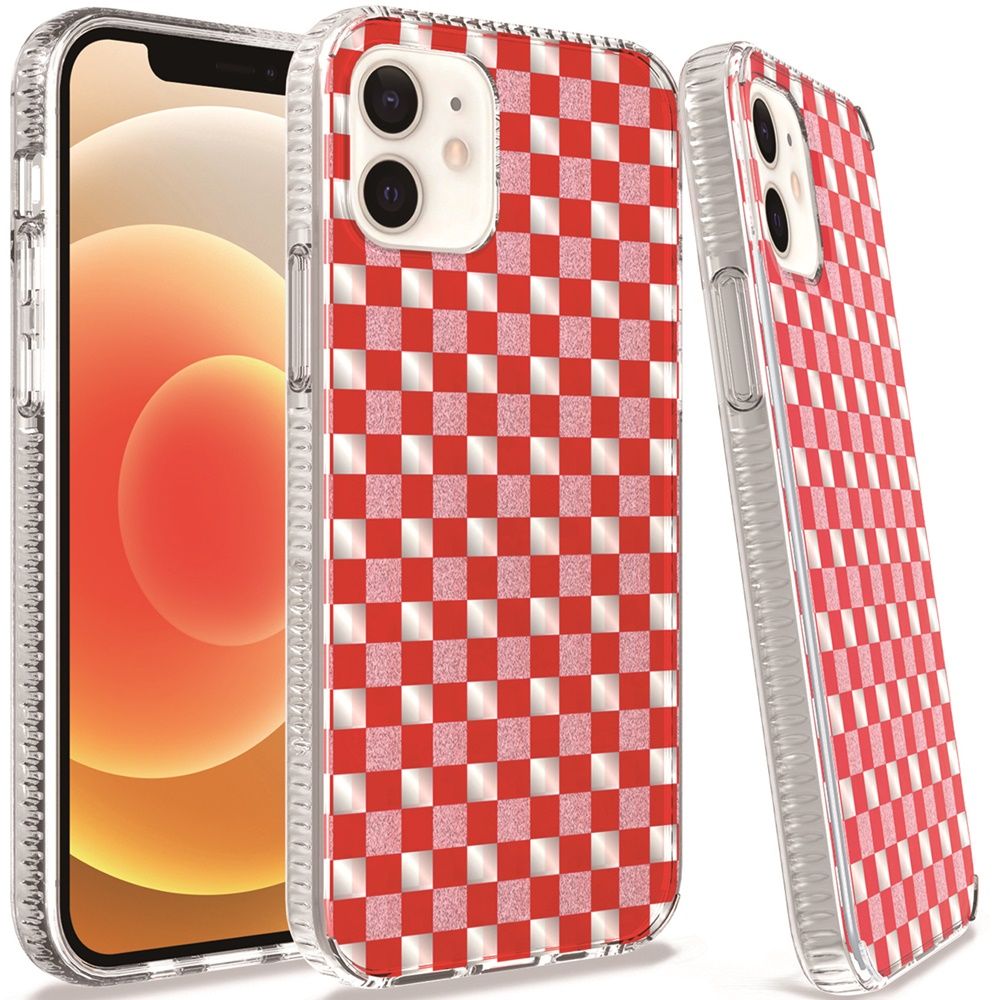 For iPhone 12 & iPhone 12 Pro (Open Camera Hole) Trendy Fashion Design Hybrid Case Cover - Red Squares