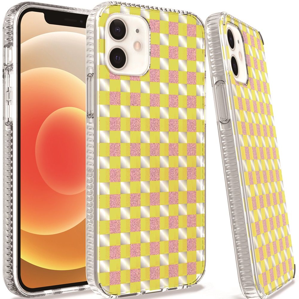 For iPhone 12 & iPhone 12 Pro (Open Camera Hole) Trendy Fashion Design Hybrid Case Cover - Yellow Squares