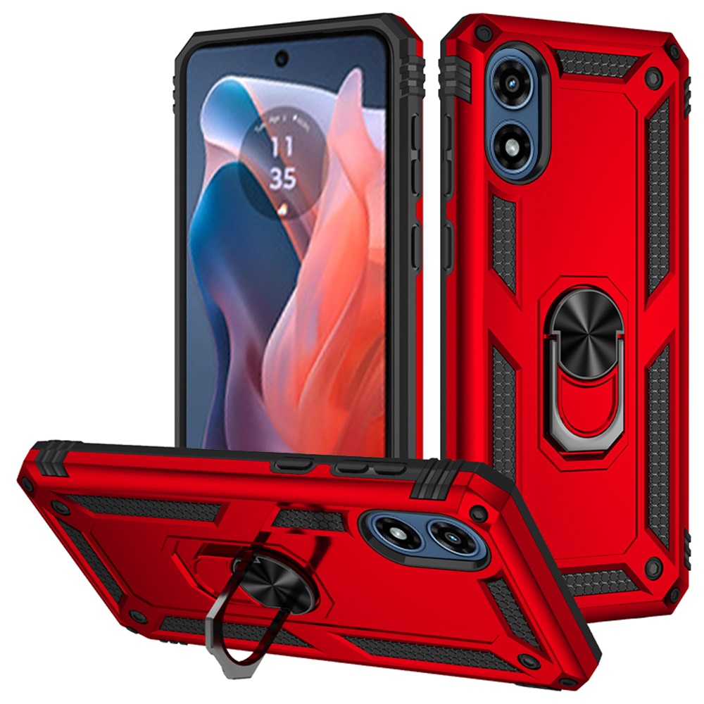 For Motorola Moto G Play 2024 Ring Magnetic Kickstand Hybrid Case Cover - Red