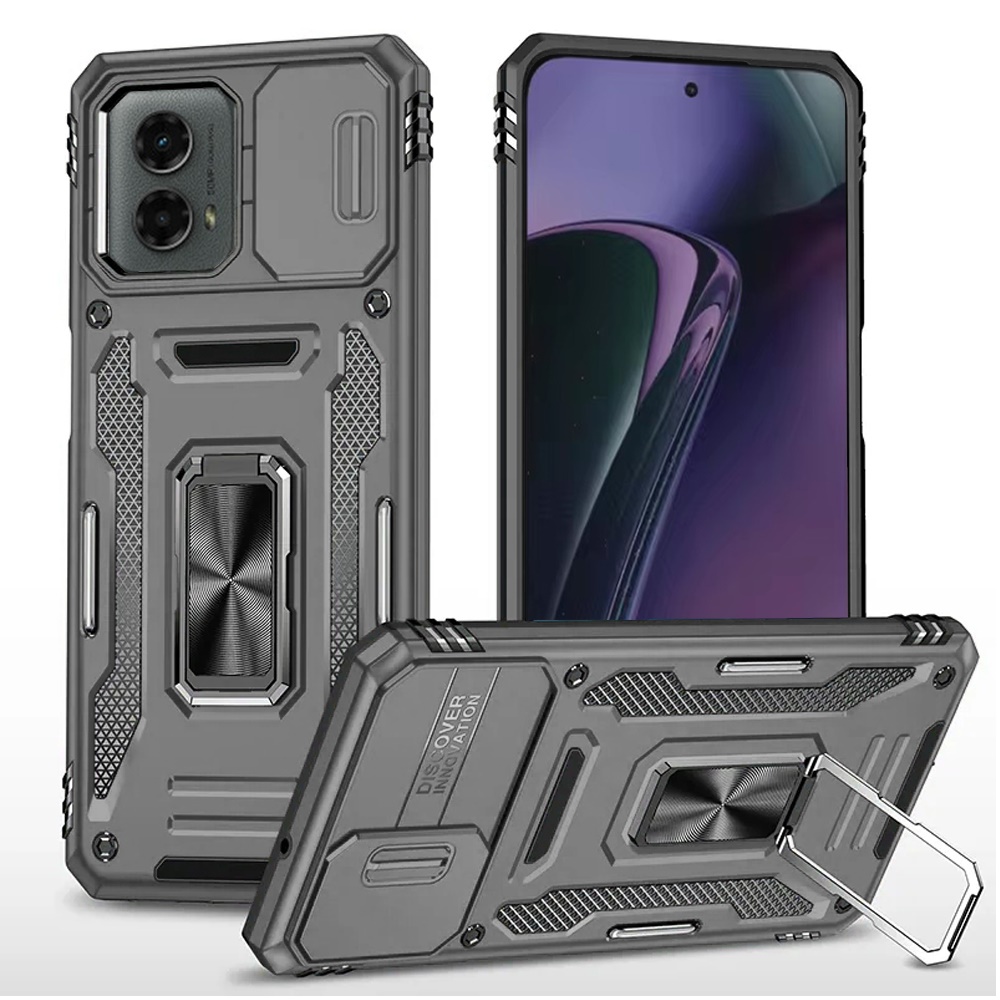 For Motorola Moto G Stylus 5G 2024 Utter Tough Metal Ring Movable Camera Window Hybrid Case Cover - Gray