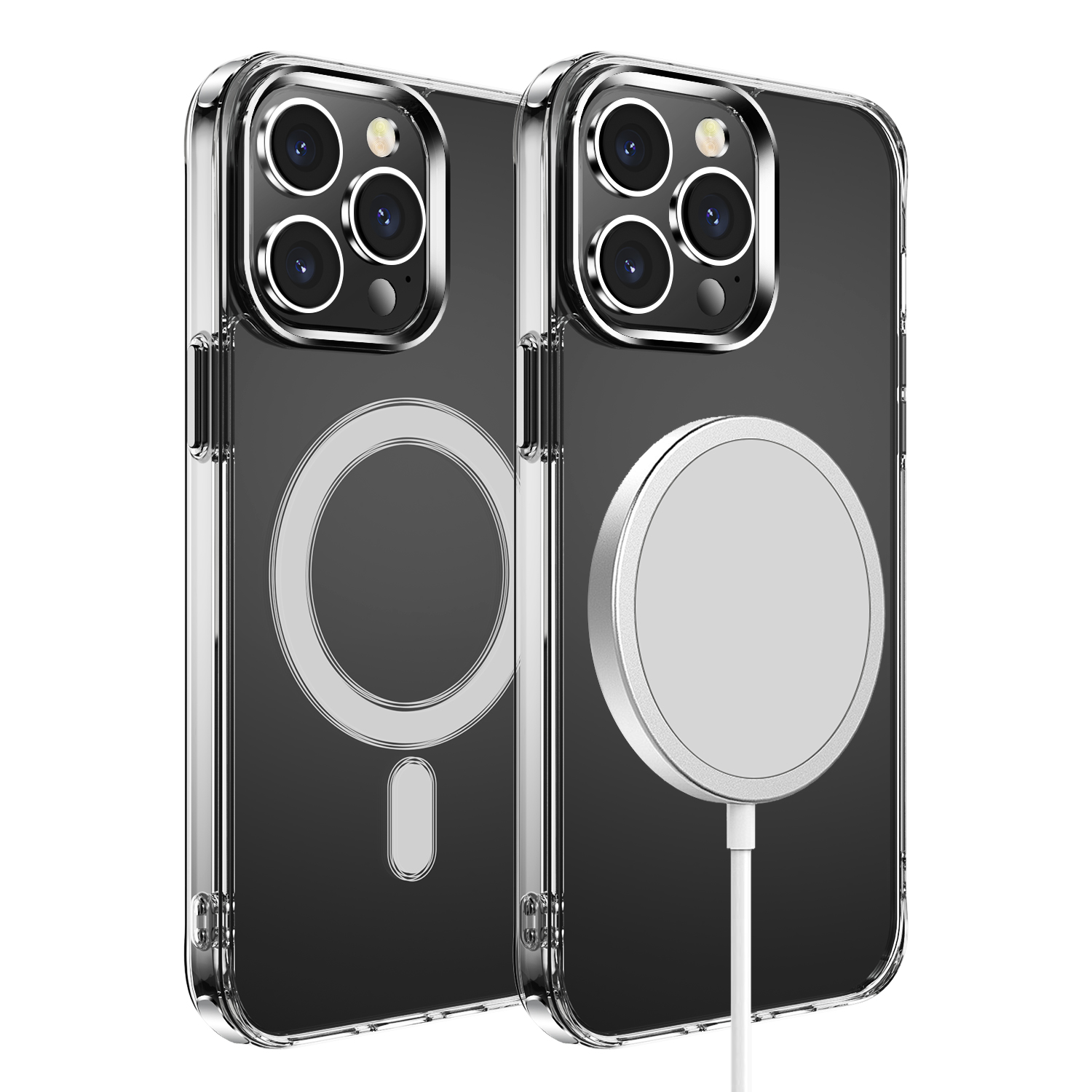 For iP15 Pro Max Thick Transparent [Magnetic Circle] Shockproof Hybrid - Clear