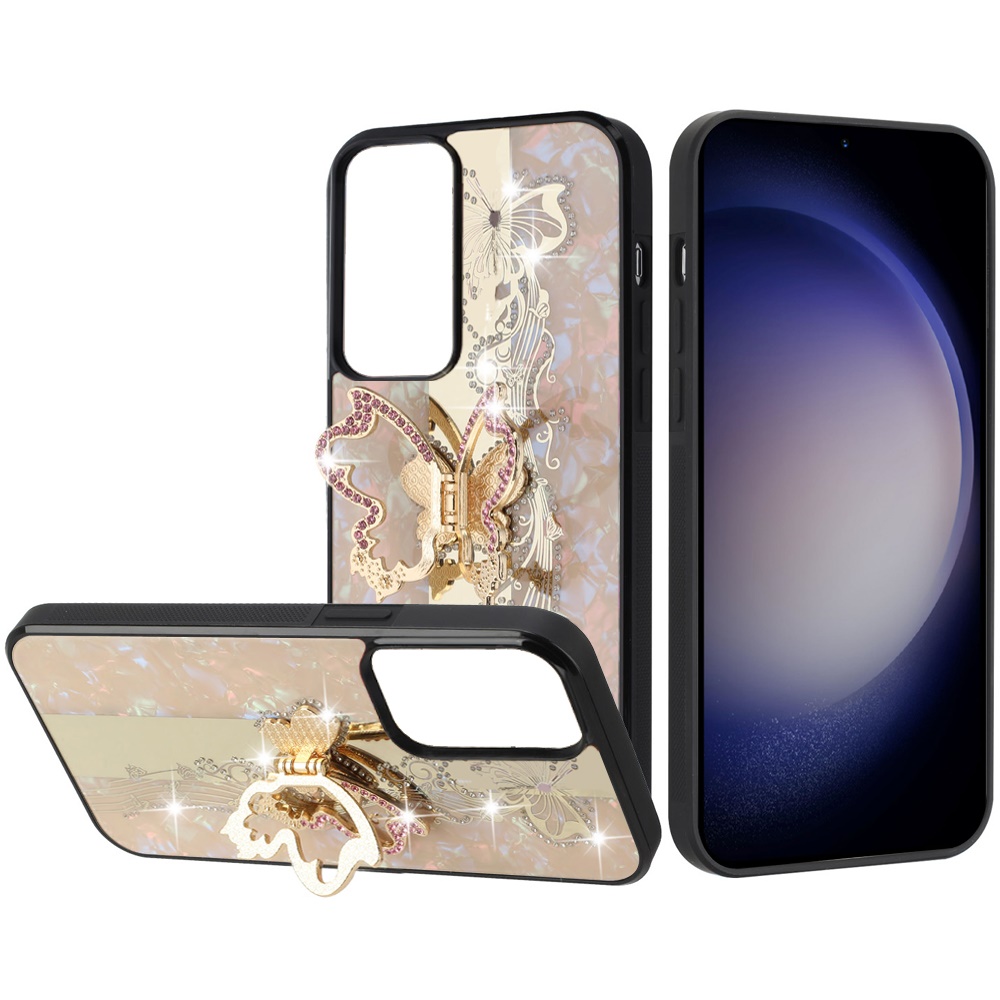 For Samsung Galaxy s24 SPLENDID Diamond Glitter Ornaments Engraving Case Cover - Enchanted Butterfly Gold