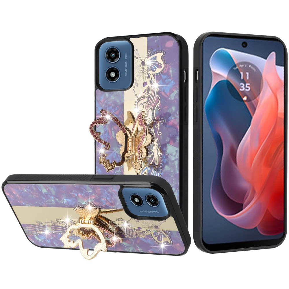 For Motorola Moto G Play 2024 SPLENDID Diamond Glitter Ornaments Engraving Case Cover - Enchanted Butterfly Purple