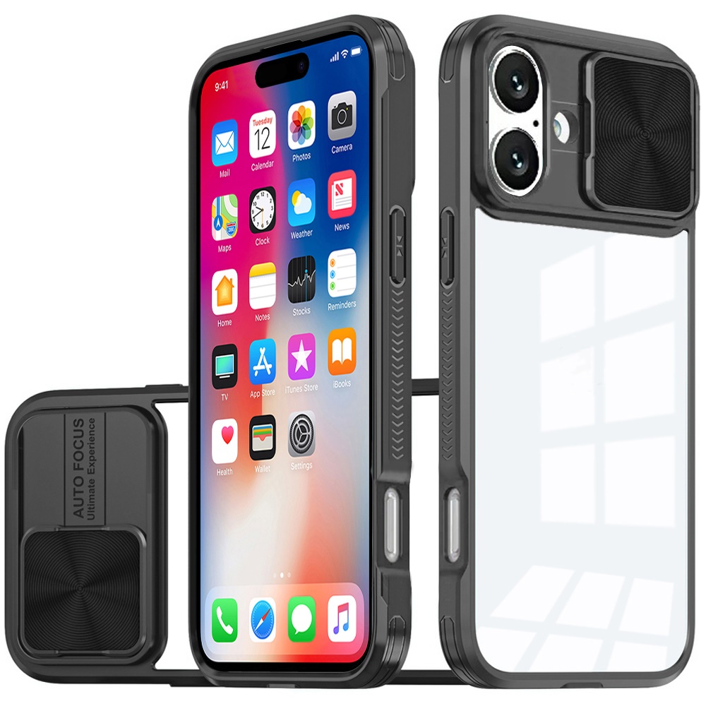 For iPhone 16 6.1 inch Fusion Transparent Clear Hybrid Case Cover - Black