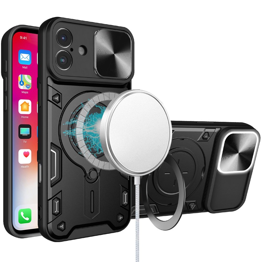 For iPhone 16 6.1 inch Magnetic Ring Stand Classic Design FULL Camera Protection Hybrid Case - Black
