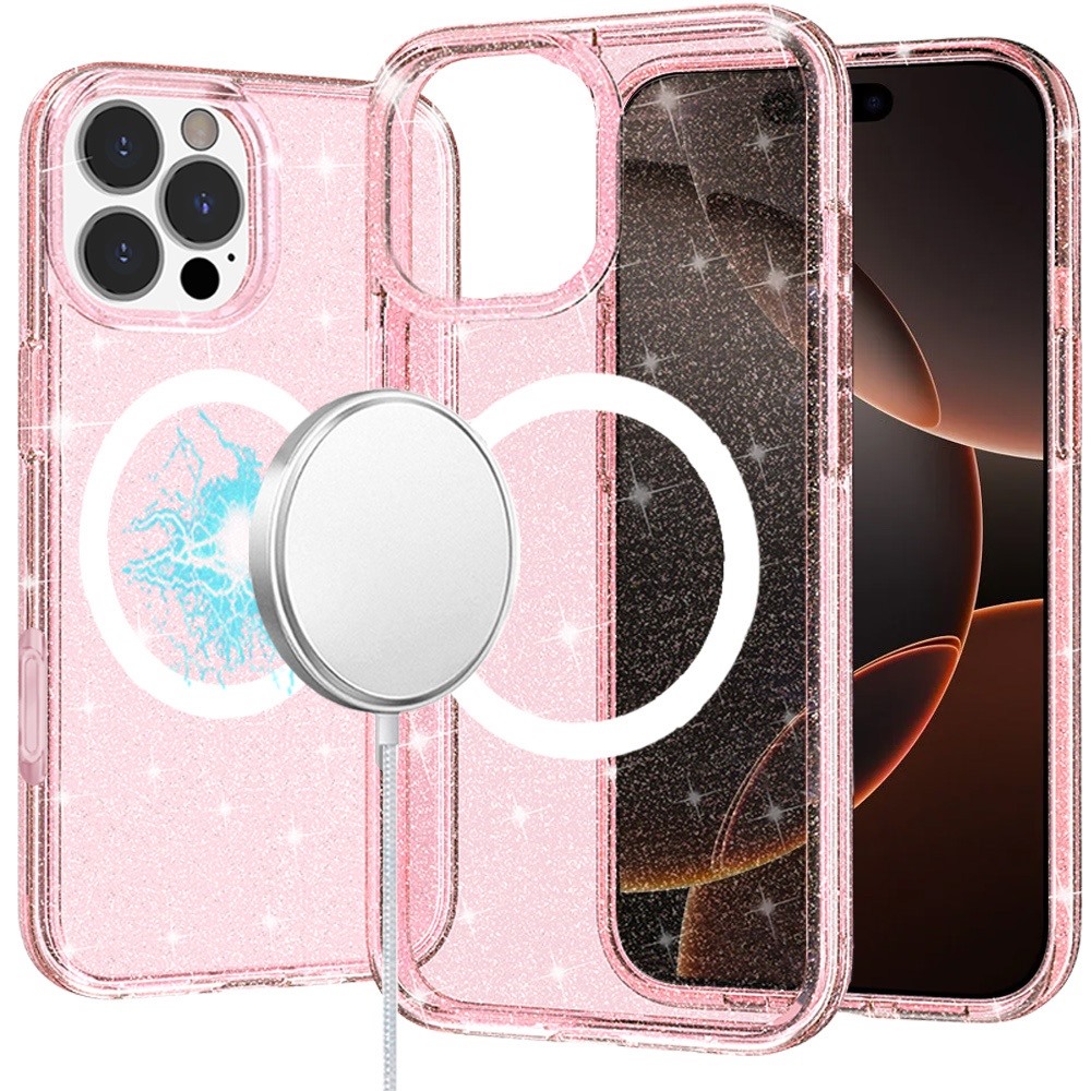 For iPhone 16 Pro 6.3 inch Glitter Ultra [Magnetic Circle] Thick 3mm Transparent Hybrid - Pink